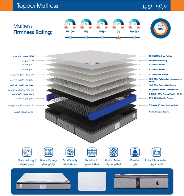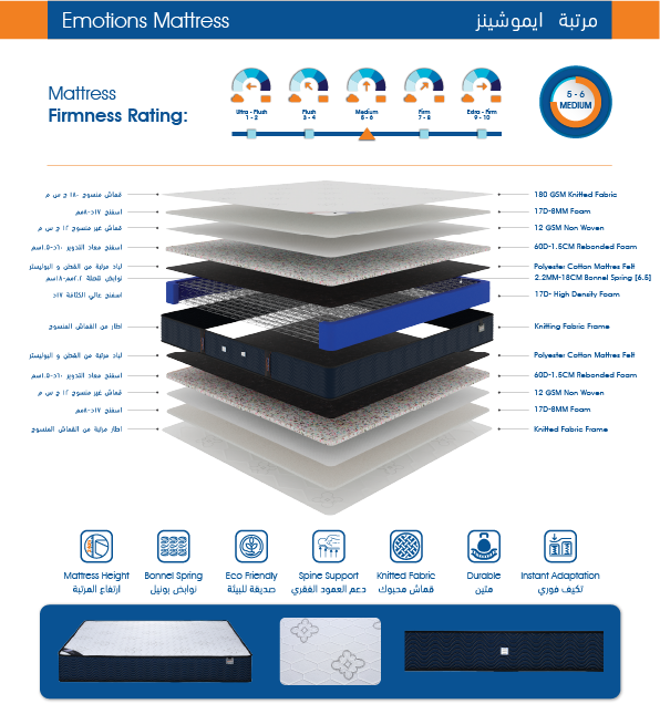 • طبقات فوم عالية الجودة توفر مستويات راحة متوازنة