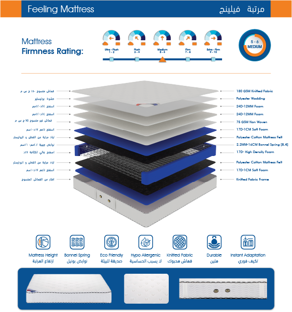 • طبقة لباد عازلة ومقاومة للرطوبة لحماية طبقات الإسفنج